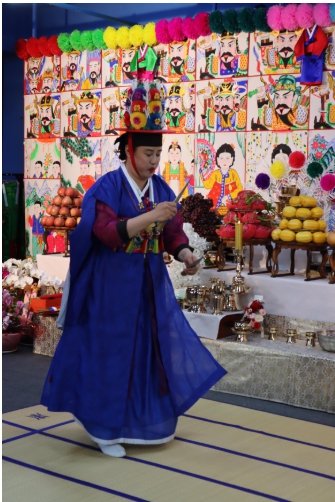 반도체, 로보틱스, 자동차 등 세계 최첨단 제조 기술을 선도하는 대한민국에서 수천 년 전부터 내려온 **’무(巫)’**의 문화가 여전히 강력한 영향력을 발휘한다는 점은 매우 독특하고도 흥미로운 현상입니다. 한국인들은 이러한 한국 고유의 샤머니즘 체계를 **무속(Musok [mu-sok])**이라 부르며, 이 신비로운 영적 세계를 잇는 이들을 **무당(Mudang [mu-dang])**이라고 칭합니다. 가장 현대적인 스마트시티의 빌딩 숲 사이에서 무속이라는 전통적 가치가 공존하는 모습은 한국인의 역동적인 정신세계를 잘 보여줍니다.